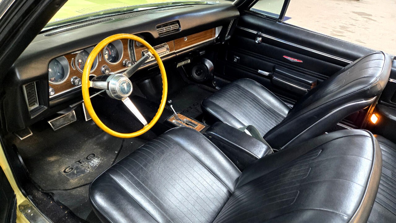 Right now on AutoHunter, you can find this 1968 Pontiac LeMans Convertible-based GTO tribute, which is powered by a 350ci V8 paired with a TH350 three-speed automatic transmission. It comes with features such as a power top, power brakes, and factory air conditioning. Finished in light yellow and equipped with a black soft top over a black vinyl interior, this American open-air cruiser comes from the dealer in Illinois with a clear title.