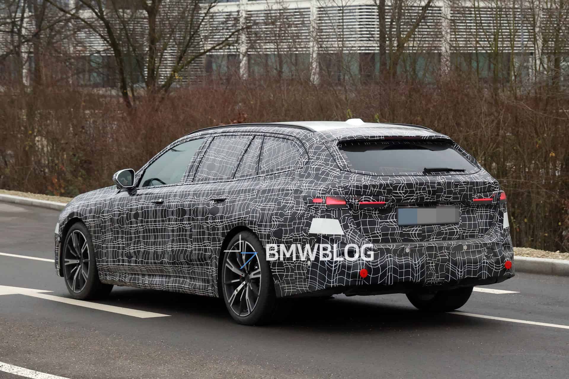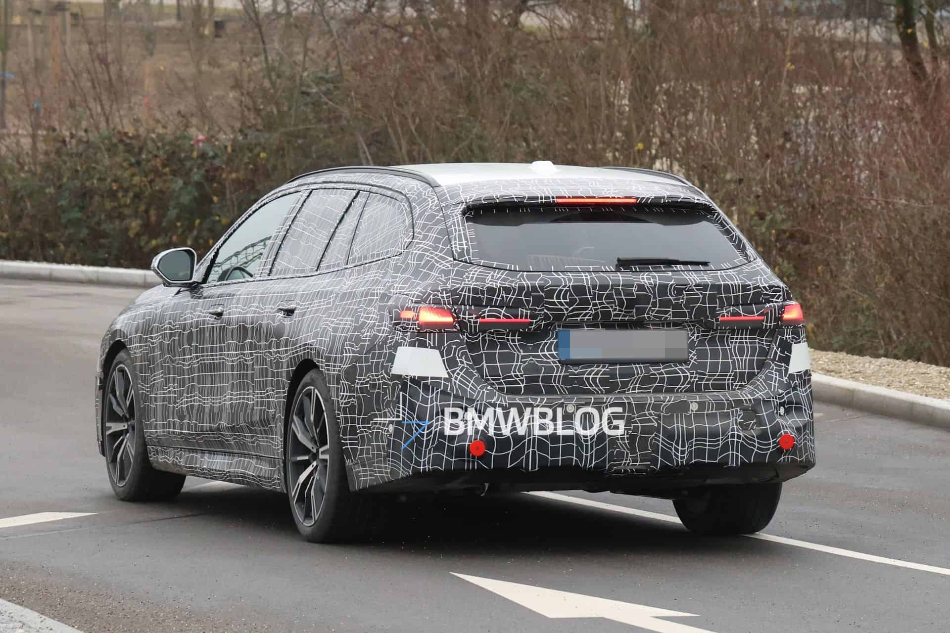 Speaking of the rear, the design seems largely carried over from the current 5 Series Touring. However, the taillights partially reveal new graphics, not too far removed from those of the next-generation 3 Series and i3. Unfortunately, the tailgate still features fixed glass, as BMW dropped the ability to access the cargo area without opening the entire panel when the G61 debuted last year.