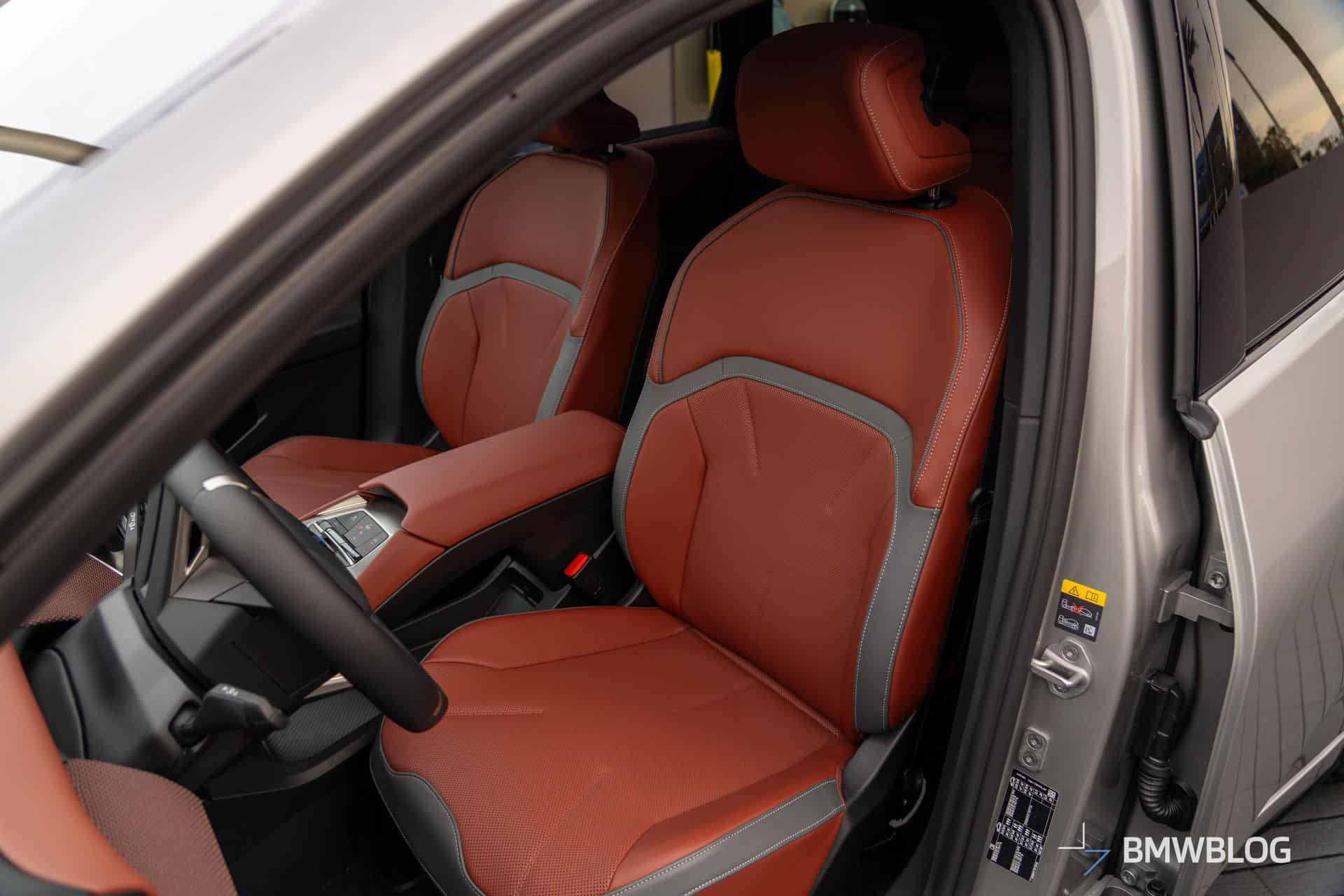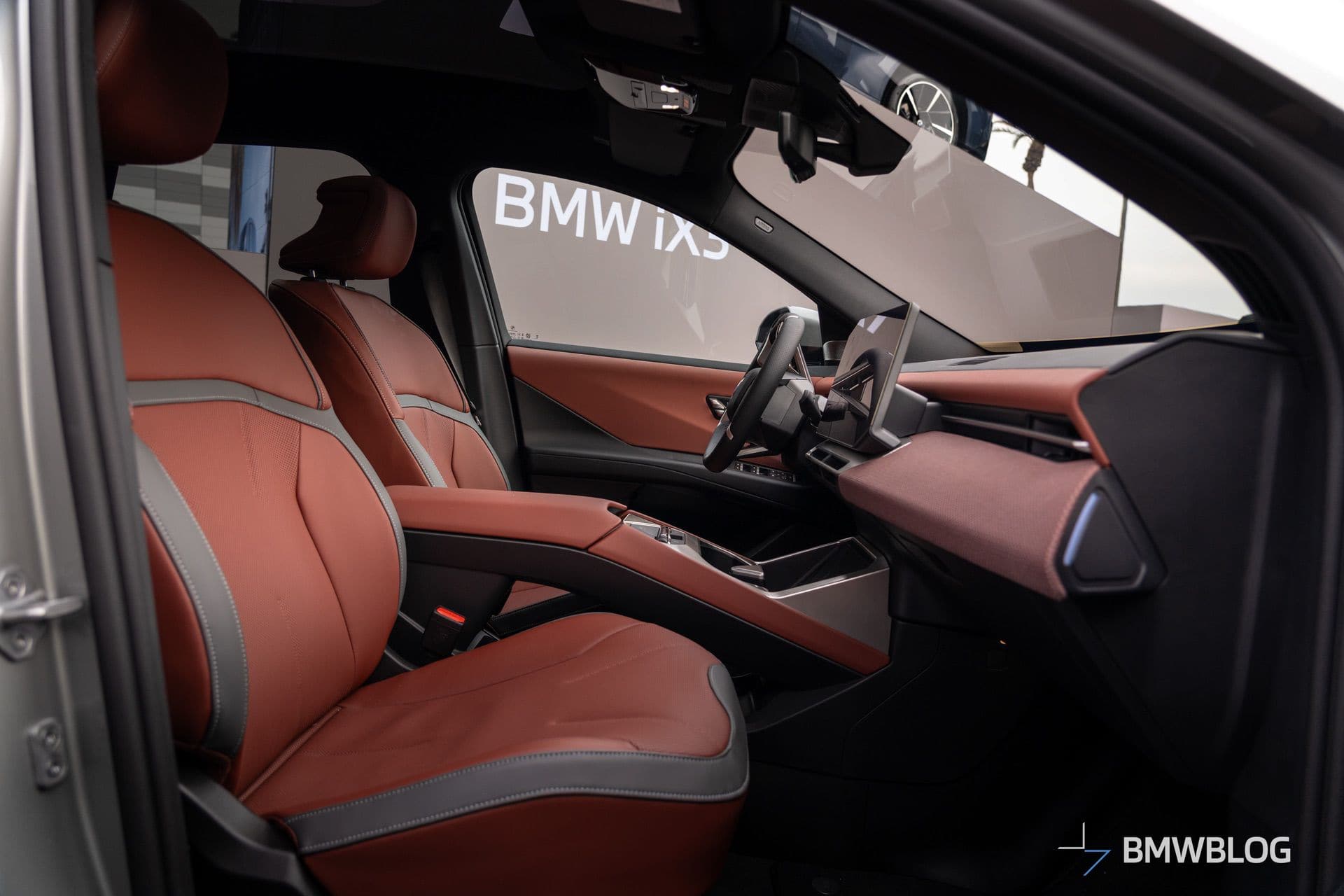 We were allowed to peek inside their cabins, where the optional Sport steering wheel was the shared element. BMW chose Castanea artificial leather upholstery for one iX3 and black Individual genuine leather for the other. More daring customers can opt for a white interior and even match it with a white steering wheel.