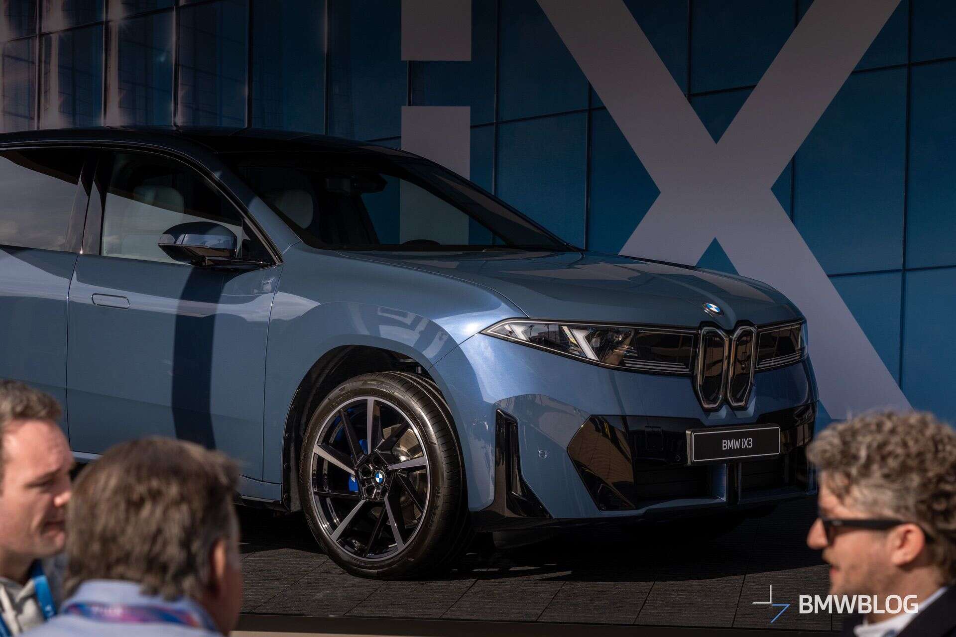 Both are of the “50 xDrive” variety, as it’s the only version available at launch. Another commonality between the two vehicles is the M Sport Package. BMW opted for different body colors and wheel designs to set them apart. The iX3 finished in Space Silver rides on 22-inch wheels, while the Ocean Wave Blue showcar features a smaller 21-inch set.
