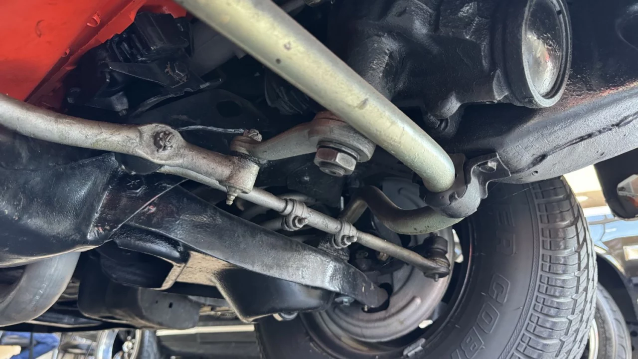The cabin is furnished in black vinyl with bucket seats up front. A center console houses a four-speed shifter and a clock. Other features include a three-spoke steering wheel with power steering, factory AM/FM push-button radio, rear speaker, and more.