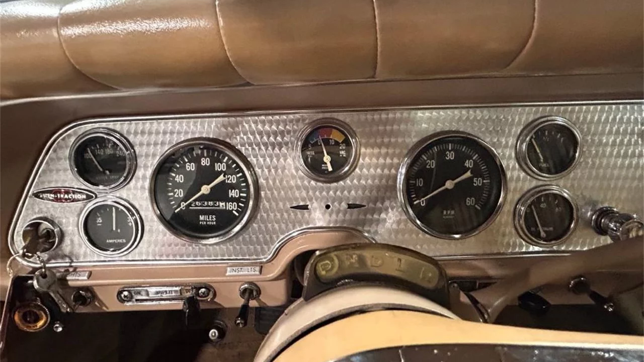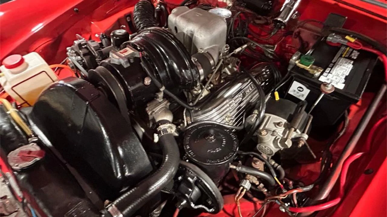 The uniqueness of this sleek coupe is perfectly represented by this beautiful, Parade Red and Parchment White 1958 Packard Hawk. The hues are complemented by gold Mylar trim along the fins that match the tan leather cabin with nylon loop carpeting. The engine-turned aluminum instrument panel is fitted with race-inspired Stewart-Warner instruments. Take a peek at the 275-horsepower 289ci V8 and you’ll notice the McCullough supercharger. Like most Hawks, a Borg-Warner Flight-O-Matic automatic handles shifting duties. “It’s just hard to find fault cosmetically or mechanically. Inside, outside. top and bottom no bad news,” says the seller. “It drives as good as it looks.”