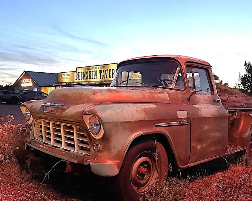 For 1955, Chevrolet was moving into what became known as the “Task Force” generation of light-duty and medium-duty trucks. Exterior features included an eggcrate grille, fender-mounted emblems, and a stepside bed. The truck on display looked like it had been parked there for quite some time. My curiosity got the best of me, so I looked on Google Maps to see if I could figure out when it was first parked. The 2018 street view image shows it there – and that the paint was in quite a bit better condition then. The Buckskin Tavern, by the way, holds the title for being home to Arizona’s “longest bar” at 96 feet in length.