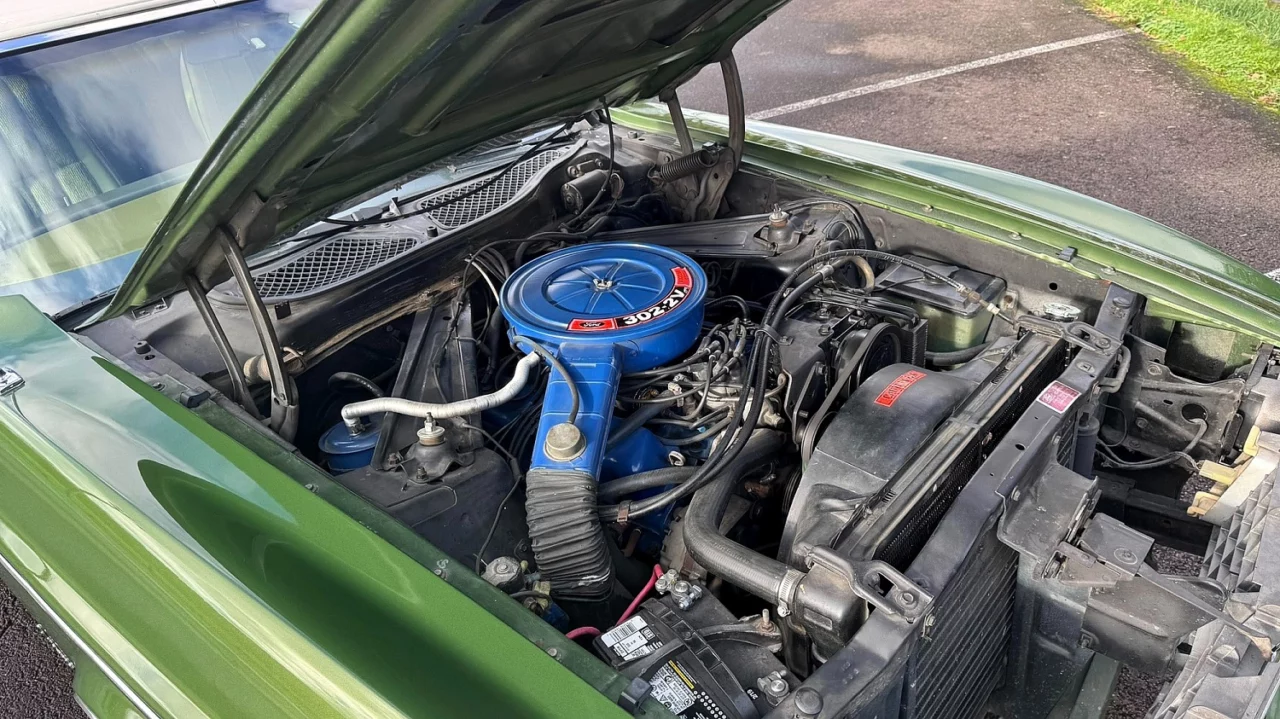 Under the hood is the reportedly numbers-matching 302ci V8, which is paired with a two-barrel carburetor. The reportedly original SelectShift Cruise-O-Matic three-speed automatic transmission sends the engine’s power to a 3.00:1 rear end. New shocks and manual drum brakes keep this pony car from running wild.