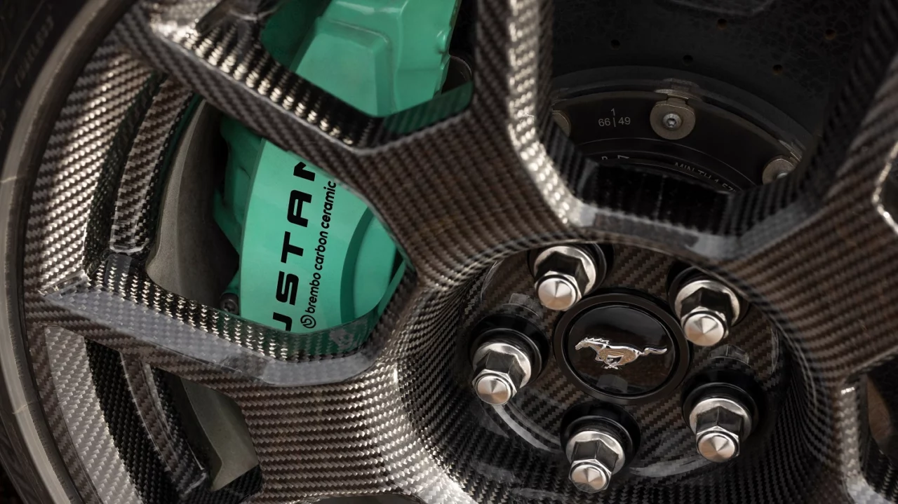 An available Track Pack takes the SC’s performance to the next level by adding a variety of aerodynamic and suspension upgrades. Ford Racing cut 150 pounds of weight by installing a set of carbon fiber wheels wrapped in Michelin Pilot Sport Cup2 R rubber and Brembo carbon-ceramic brakes. Using a magnesium strut tower brace sharpened the SC’s steering feel and reduced unsprung mass.