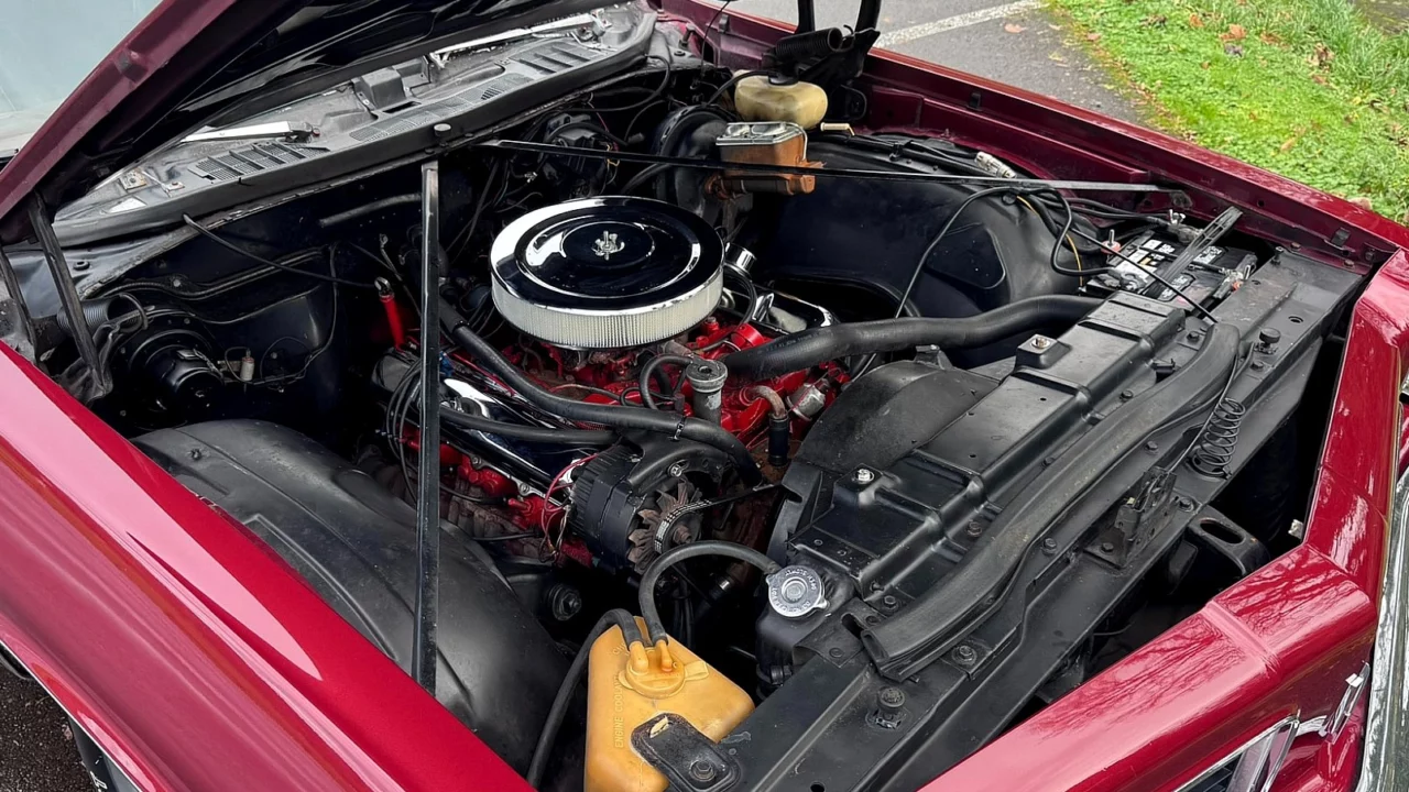 Finished in Cranberry Poly with a white accent stripe, the car is said to be highly original. Upgraded features include power front disc brakes, power steering, tilt steering wheel, and dual exhaust system.