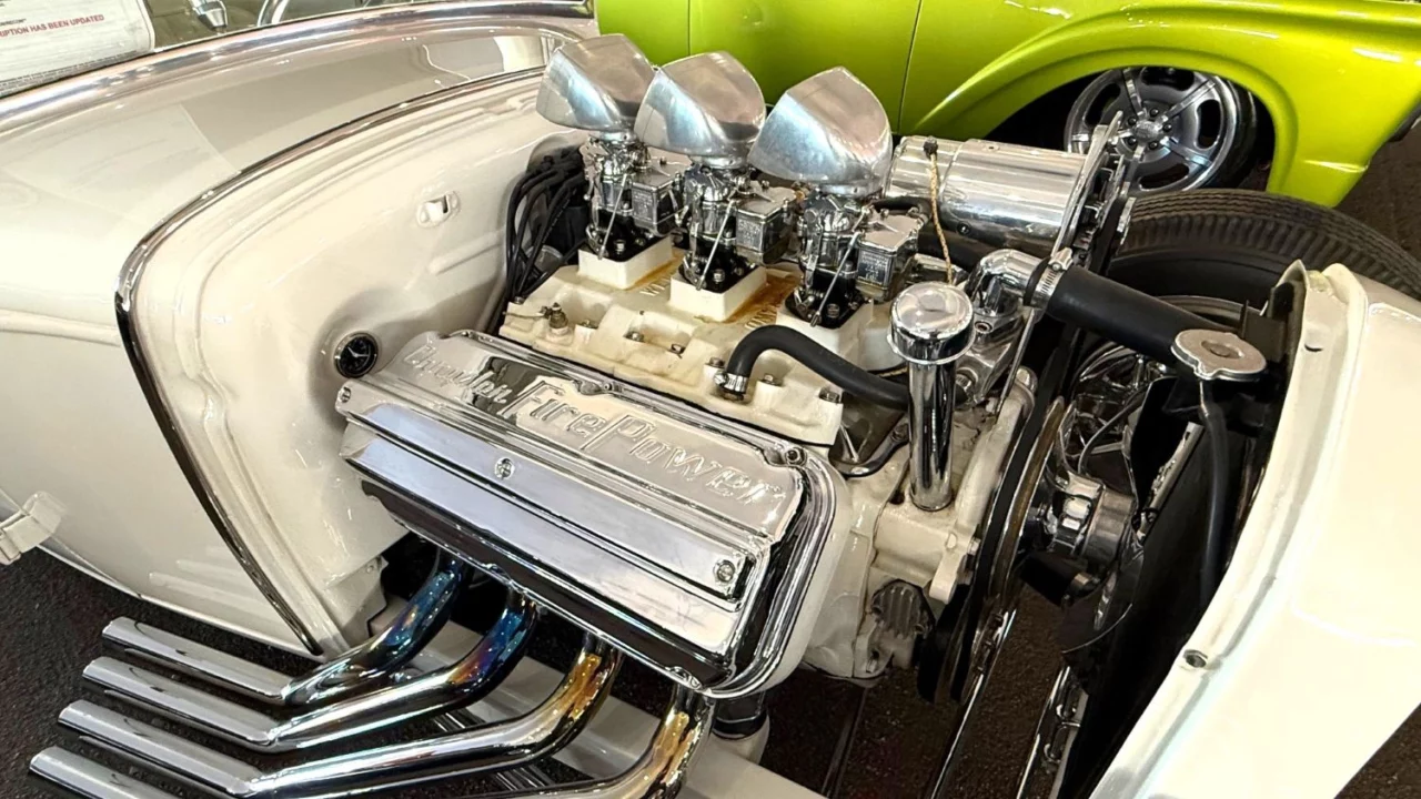 I can’t say I am a very good judge on old hot rods, but this Model A-inspired coupe was built by Jesse James for Paul Teutul of “American Chopper,” so this is the perfect gift for your significant other if (s)he’s a fan of “Housewives of Beverly Hills” or some other reality-based drama. That engine you see is a 1953 Chrysler 331ci FirePower Hemi with Zoomie headers—yowsa! As it’s a hot rod, there’s a lot of other equipment that wasn’t a part of this vehicle’s birth, but telling you about the 1957 Ford rear end, etcetera, is not as rewarding so let’s move on. . .