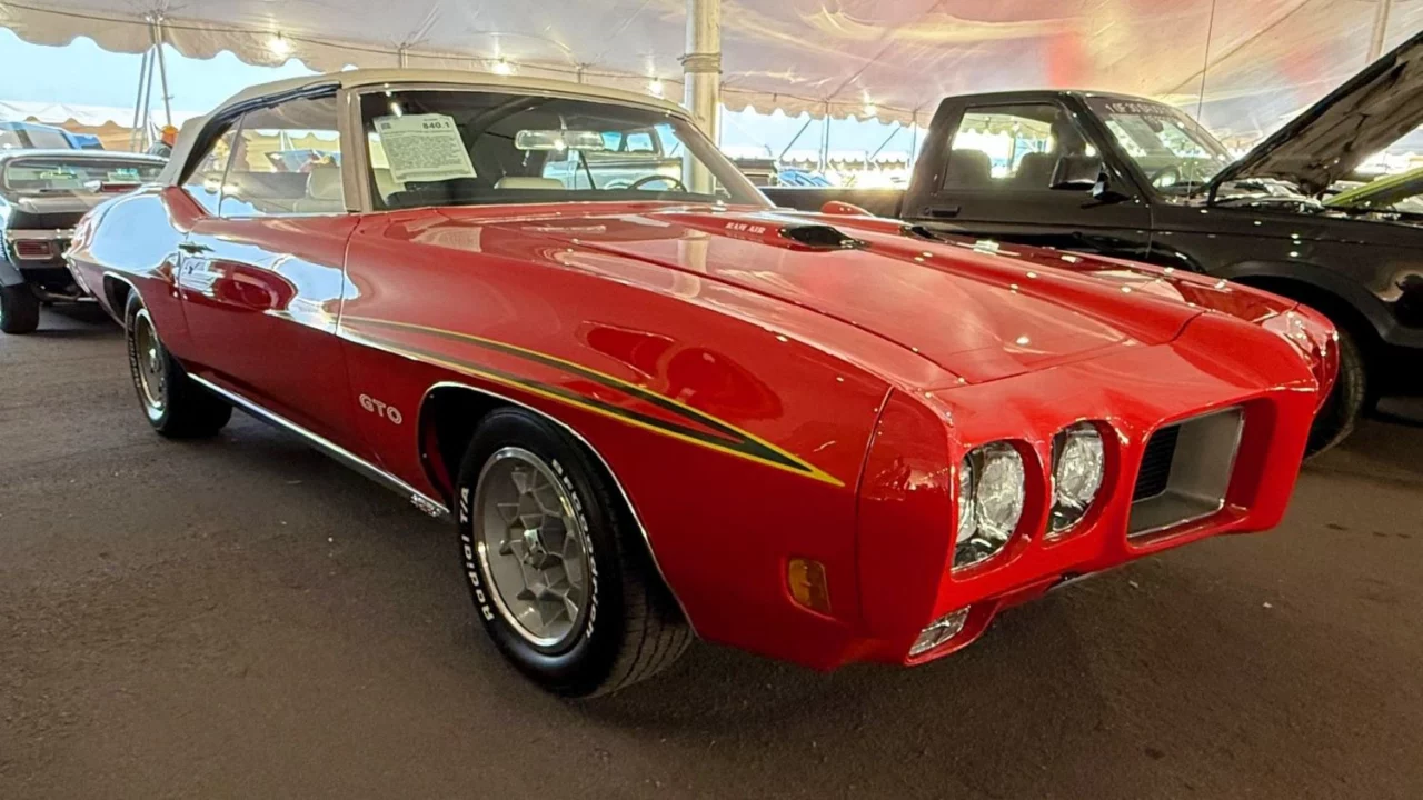 If you ever wondered what it would look like if Pontiac introduced “Honeycomb” polycast wheels a year earlier on what may be the best-looking GTO ever, here ya go. The builder also added Judge stripes, Ram Air 455 with fuel injection, and TREMEC five-speed manual. Out back, you’ll find 3.55 limited-slip gears. This was originally a 400/four-speed convertible, so prepare to cry, purists!
