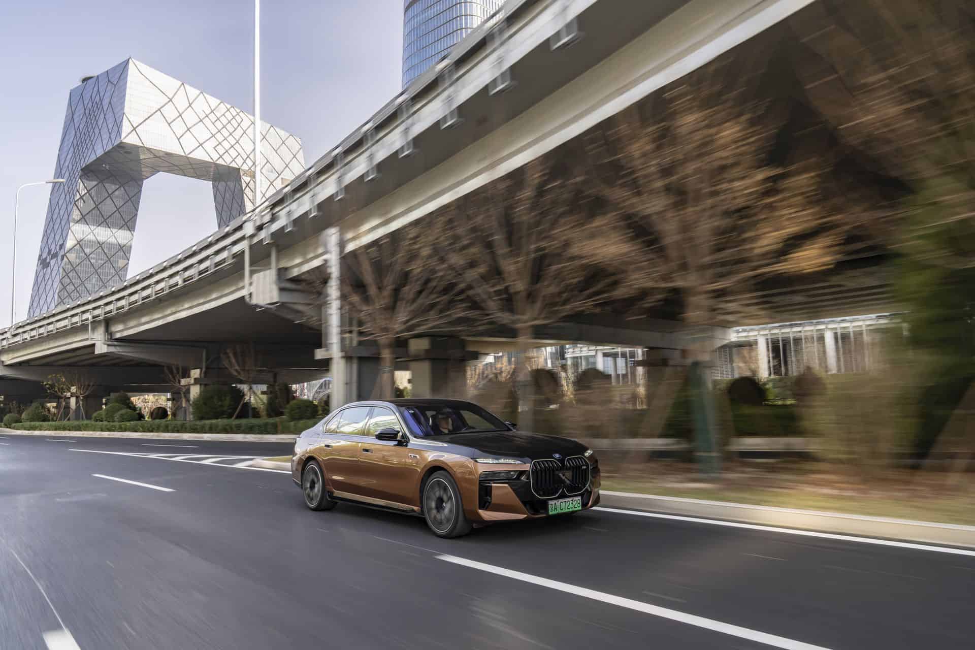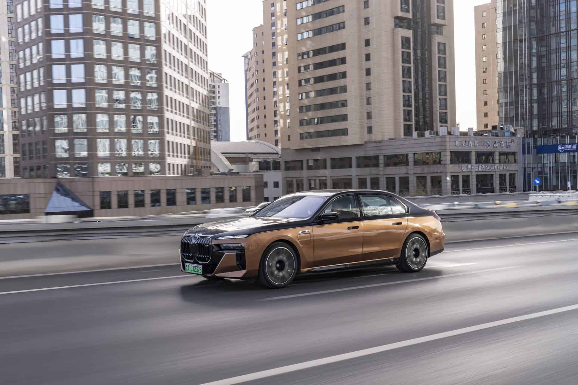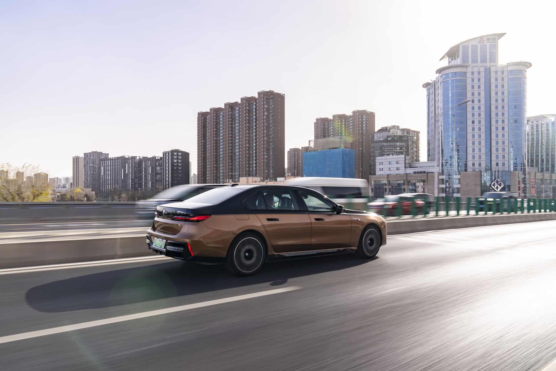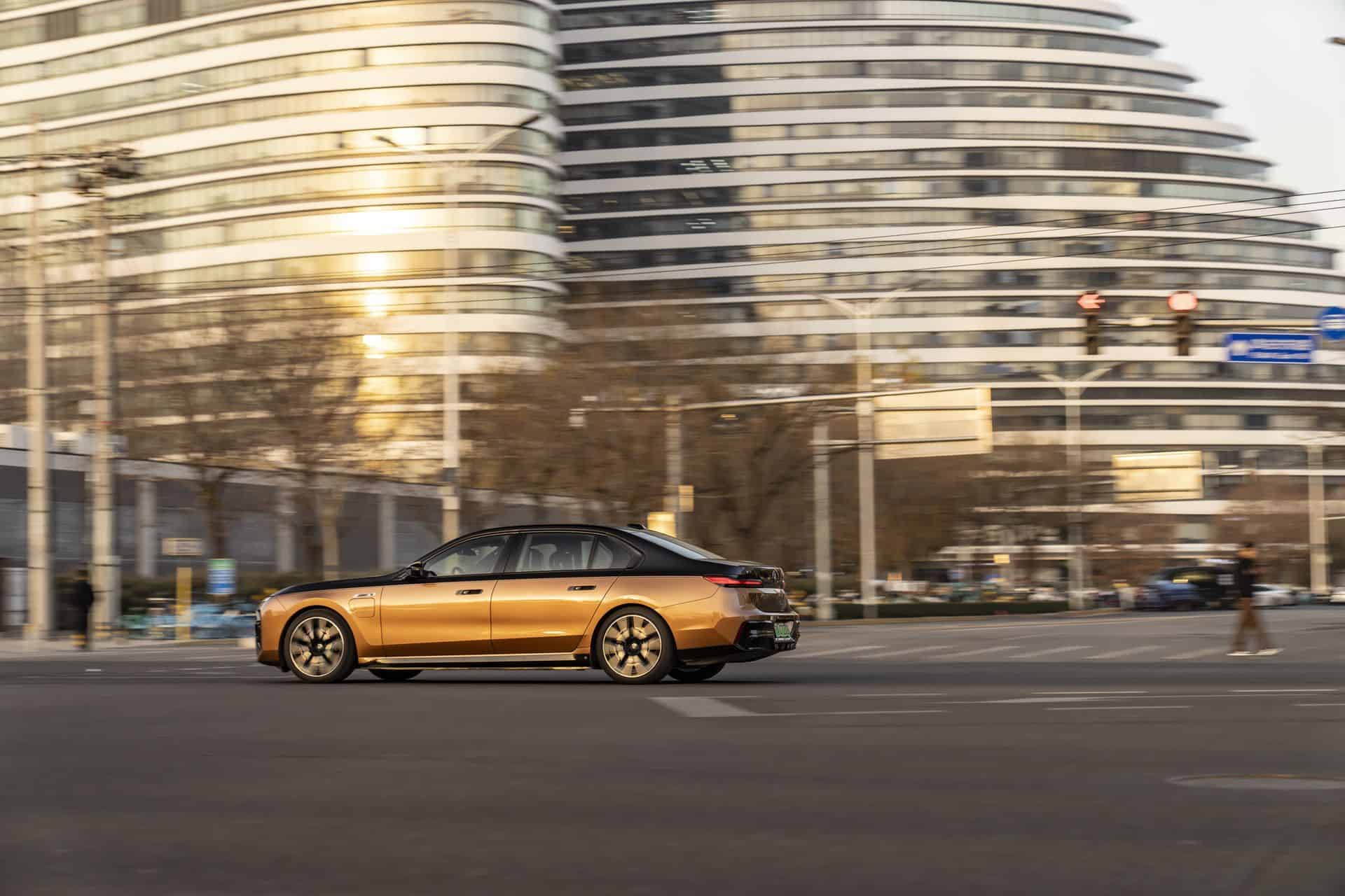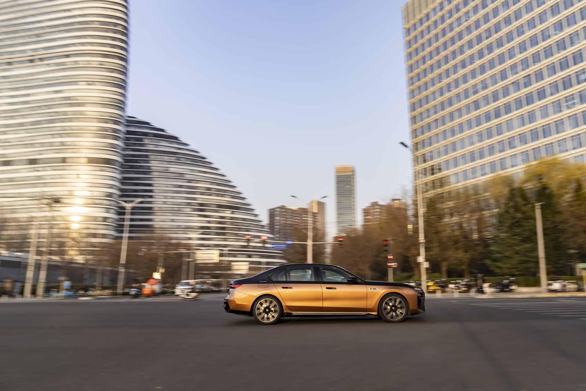 For this Beijing photoshoot, BMW chose to highlight the M Performance electric sedan in a Liquid Copper and Sapphire Black color combination. Even without ticking any additional option boxes, this M760Le would cost at least €160,000 back home in Germany.